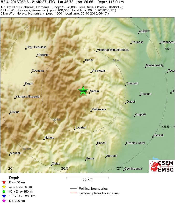 Un cutremur subcrustal cu magnitudinea de 3,7 grade s-a produs in noaptea de sambata 16 iunie spre duminica 17 iunie in regiunea Vrancea.
