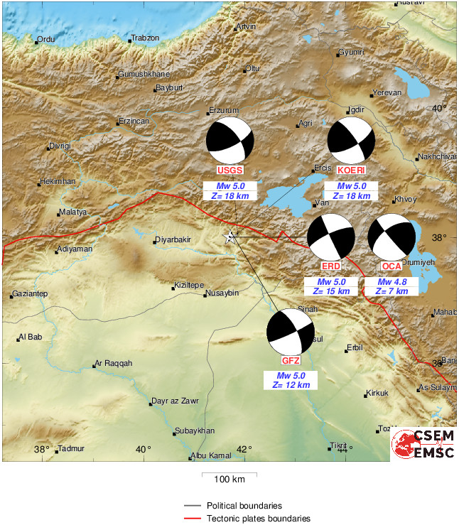 Cutremurul s-a produs la adancimea de 14 km si a avut magnitudinea Mw de 5,0 grade (magnitudinea locala ML 5,2 potrivit Observatorului Seismologic regional Kandilli).