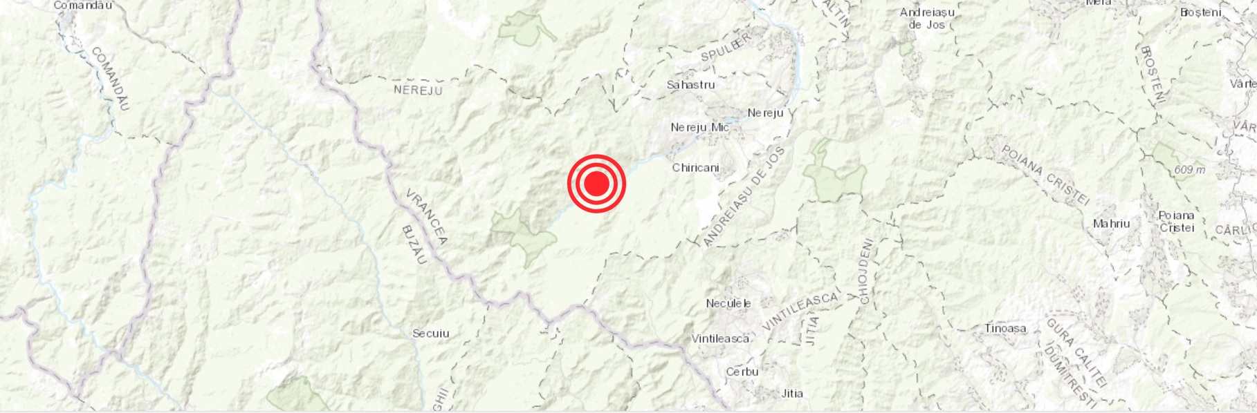 Seismul a avut loc la ora locala 19h32min28sec (17h32min28sec UTC). Potrivit datelor publicate de Institutul National de Cercetare-Dezvoltare pentru Fizica Pamantului, epicentrul cutremurului a fost localizat in Muntii Vrancei, zona NEREJU, judetul Vrancea (45,69 grade latitudine Nordica, 26,63 grade longitudine Estica).