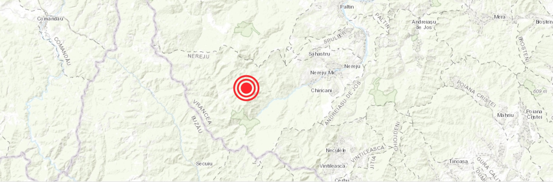 Seismul a avut loc la ora locala 0h13min11sec (22h13min11sec UTC). Potrivit datelor publicate de Institutul National de Cercetare-Dezvoltare pentru Fizica Pamantului, epicentrul cutremurului a fost localizat in Muntii Vrancei, intre localitatile NEREJU si COMANDAU, in judetul Vrancea (45,70 grade latitudine Nordica, 26,58 grade longitudine Estica).