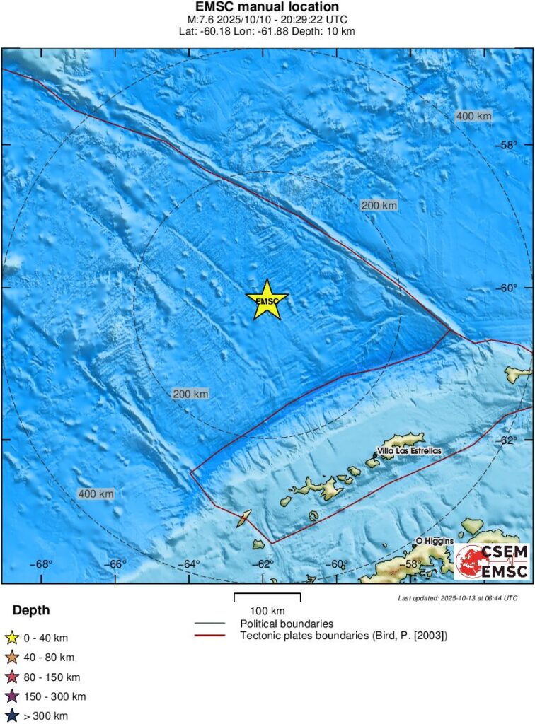 Un cutremur major, cu magnitudinea moment de 7,6 grade, s-a produs in ziua de vineri, 10 octombrie, in Stramtoarea Drake, la Sud de Capul Horn (extremitatea sudica a Americii de Sud).