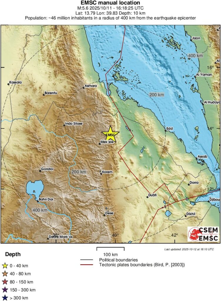 Miscarile seismice au fost resimtite in Etiopia, in special in partea nordica, dar si in Eritreea.