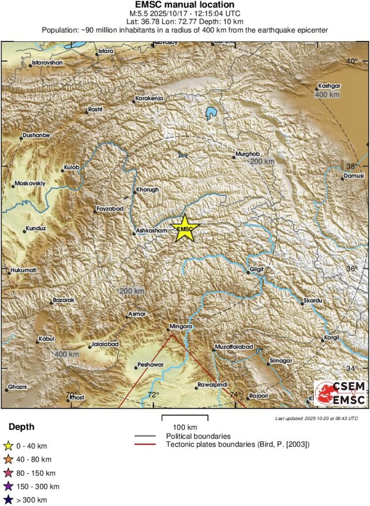 Un cutremur moderat, cu magnitudinea moment de 5,5 grade, s-a produs in ziua de vineri, 17 octombrie, in Nordul Pakistanului.
