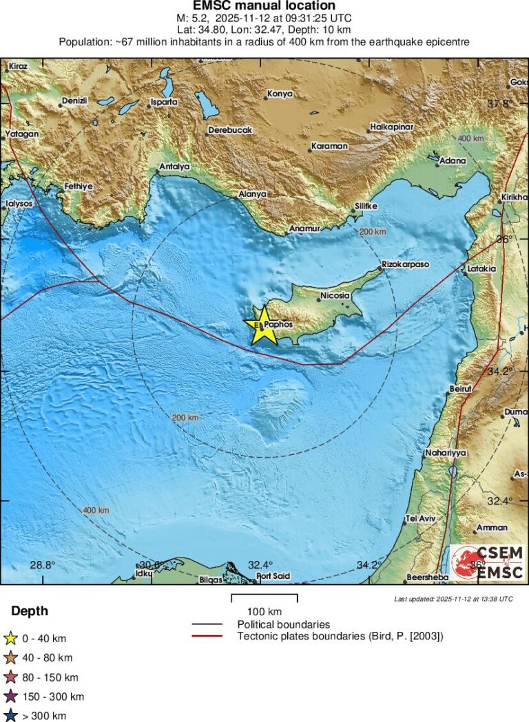 Un nou cutremur moderat, cu magnitudinea moment de 5,3 grade, s-a produs in Cipru in ziua de miercuri, 12 noiembrie. Acesta a urmat la cateva ore seismului cu magnitudinea moment de 5,2 grade produs in cursul diminetii in aceeasi zona.