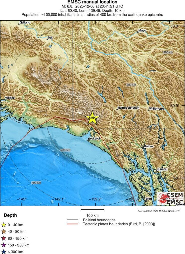 Un cutremur puternic, cu magnitudinea moment de 6,8-7,0 grade, s-a produs in ziua de sambata, 6 decembrie, in Vestul Canadei, in apropierea granitei cu statul american Alaska.