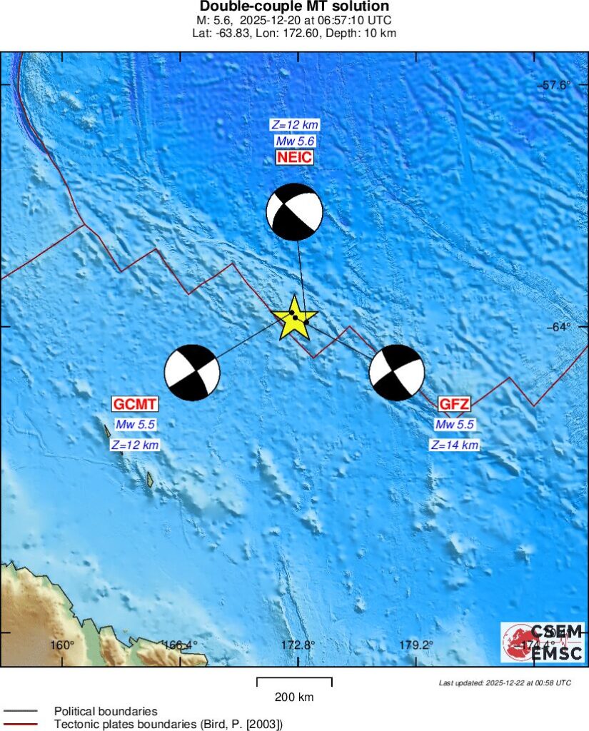 EMSC Mecanism de focar cutremur Ins. Balleny 20 decembrie