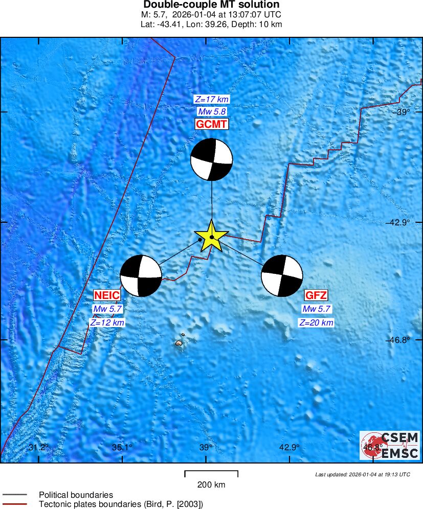 EMSC: Mecanism de focar cutremur Ins. Prince Edward 4 ianuarie