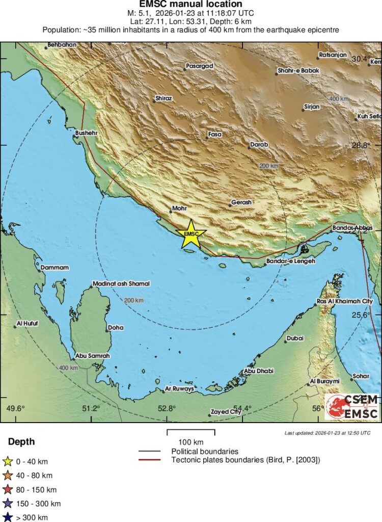 Un cutremur moderat, cu magnitudinea mb de 5,1 grade, s-a produs in ziua de vineri, 23 ianuarie, in Sudul Iranului, provincia Fars.