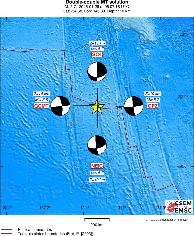 EMSC: Mecanism de focar cutremur Ins. Macquarie 26 ianuarie