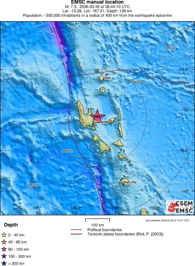 Un cutremur major, cu magnitudinea moment de 7,3 grade, s-a produs in ziua de luni, 30 martie, in regiunea arhipelagului Vanuatu (Oceanul Pacific).